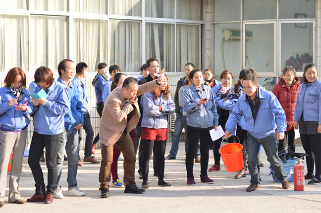 12月6日下午 ,隨著毛明輝副總經(jīng)理的一聲哨響,一場(chǎng)別開生面的消防運(yùn)動(dòng)會(huì)在南通海盟服裝有限公司火熱開賽。該運(yùn)動(dòng)會(huì)是南通海盟服裝有限公司組織的第五屆消防運(yùn)動(dòng)會(huì),來(lái)自公司的9支代表隊(duì)在提水桶、搬運(yùn)塑料簍及衣架、搬運(yùn)滅火器、迅速火盆滅火聯(lián)手接力賽項(xiàng)目上展開比拼。
