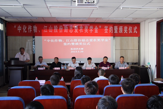 5月20日,由南通江山農(nóng)藥化工股份有限公司與中化作物保護(hù)品有限公司聯(lián)合捐助的“中化作物、江山股份勵(lì)志愛農(nóng)獎學(xué)金”簽約暨首次頒獎儀式在石河子大學(xué)農(nóng)學(xué)院隆重舉行。公司黨委副書記茅云龍、中化作物副總經(jīng)理王權(quán)、石河子大學(xué)校長助理?xiàng)钚氯⑥r(nóng)學(xué)院黨委副書記艾尼瓦爾等校院領(lǐng)導(dǎo)以及校輔導(dǎo)員、學(xué)生代表參加了簽約及頒獎儀式。