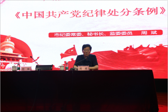 周斌指出,紀(jì)律建設(shè)是實現(xiàn)制度化管黨治黨的重要手段,各位黨員尤其是黨員干部要對權(quán)力有清醒的認(rèn)識,積極運用“四種形態(tài)”和制度建設(shè)手段,防患于未然。他圍繞“守紀(jì)律、講規(guī)矩”的重要性,詳細(xì)解讀了機關(guān)“條例”、“法規(guī)”的修訂背景、全面分析和深入闡釋了主要內(nèi)容,并結(jié)合具體問題、典型案例和園區(qū)實際,系統(tǒng)地闡明了黨員干部的行為界限以及工作方法,教導(dǎo)參會黨員時刻謹(jǐn)記“忠誠 干凈 擔(dān)當(dāng)”,切實做到對黨忠誠、敬畏紀(jì)律、擔(dān)當(dāng)作為。