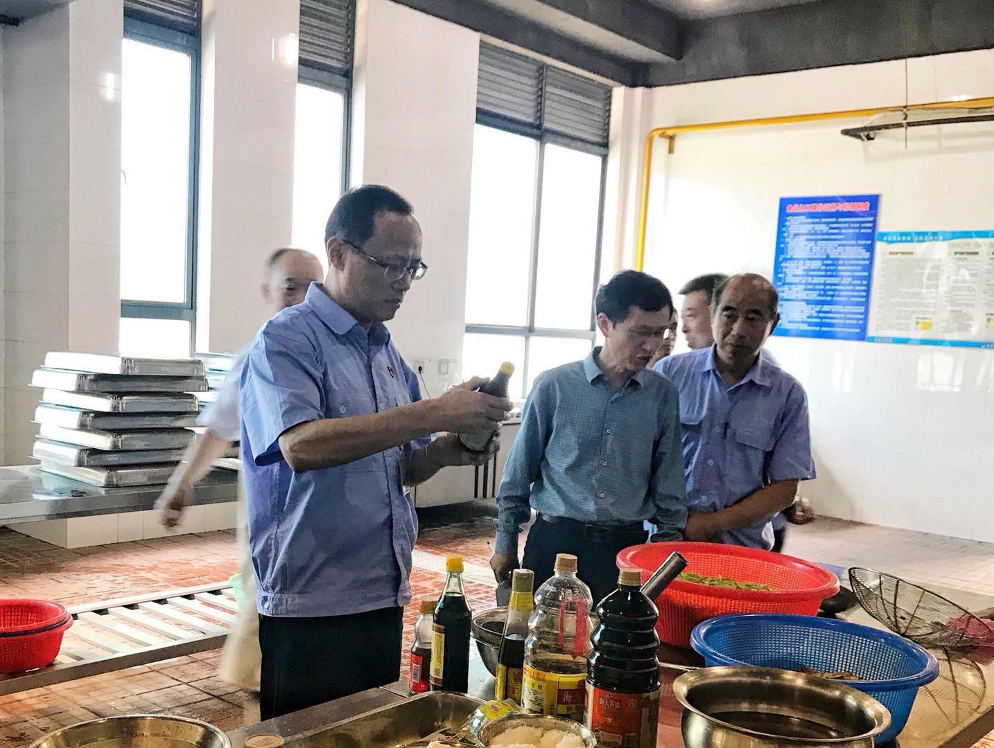 檢查人員深入食品原料庫房、操作間、洗碗間、留樣室等食堂的每個功能間,通過現(xiàn)場查看、詢問了解、檢查臺賬的方式對餐具消毒、原材料采購、食材制作加工、食品留樣等環(huán)節(jié)進行了細致檢查。對于檢查過程中發(fā)現(xiàn)的問題,要求立即整改。從檢查情況來看,兩個食堂整體衛(wèi)生狀況好、管理規(guī)范、操作流程符合要求。 沈鋒強調(diào),食堂要嚴(yán)控食材進貨渠道,嚴(yán)把材料源頭關(guān),確保食品安全衛(wèi)生。此次檢查,進一步提高了食堂從業(yè)人員的衛(wèi)生安全責(zé)任意識,規(guī)范了食堂安全管理,保障了廣大職工舌尖上的安全。