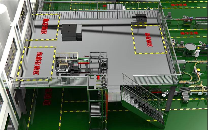 江山股份新建的自動包裝線布局上結(jié)合現(xiàn)場的管理定置要求,從包材、生產(chǎn)線布置、物流通道、人員進出通道等統(tǒng)籌考慮,在原車間局部搭建了二層操作平臺;解決一層包裝現(xiàn)場包材堆放所占空間,生產(chǎn)現(xiàn)場更整潔有序。整套生產(chǎn)線最大限度地節(jié)省空間、精簡人員,便于維護和操作,提高了工作效率和包裝品質(zhì)。