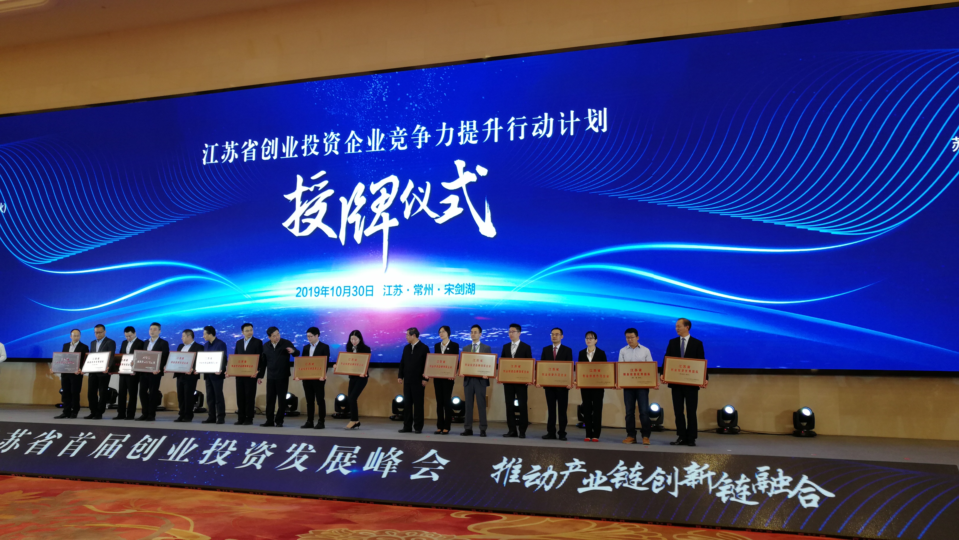 10月29日,省發(fā)展和改革委員會公布《2019年省創(chuàng)業(yè)投資企業(yè)競爭力提升計劃及創(chuàng)業(yè)投資示范載體建設工程認定名單》,南通投資管理公司子公司南通科技創(chuàng)業(yè)投資管理有限公司榮獲2019年度“江蘇省創(chuàng)業(yè)投資優(yōu)秀團隊”稱號。10月30日,產控集團副董事長顧建國、投資管理公司副總經理王劍鋒赴常州參加江蘇省首屆創(chuàng)業(yè)投資發(fā)展峰會暨認定授牌儀式。