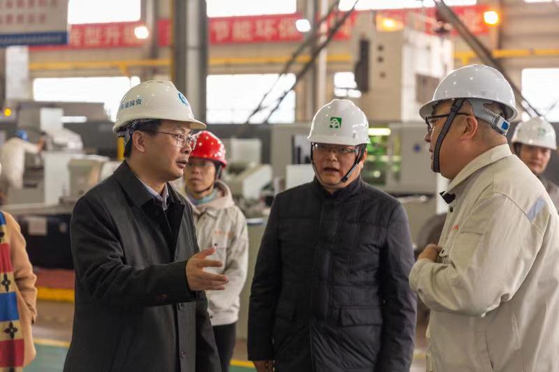 11月28日下午,南通市國(guó)資委陸雪松主任、產(chǎn)控集團(tuán)總經(jīng)理陸強(qiáng)新一行重點(diǎn)檢查了機(jī)加工車(chē)間、輔機(jī)車(chē)間和集中供氣站。金通靈科技集團(tuán)股份有限公司總經(jīng)理季偉、常務(wù)副總經(jīng)理季維東等陪同檢查。