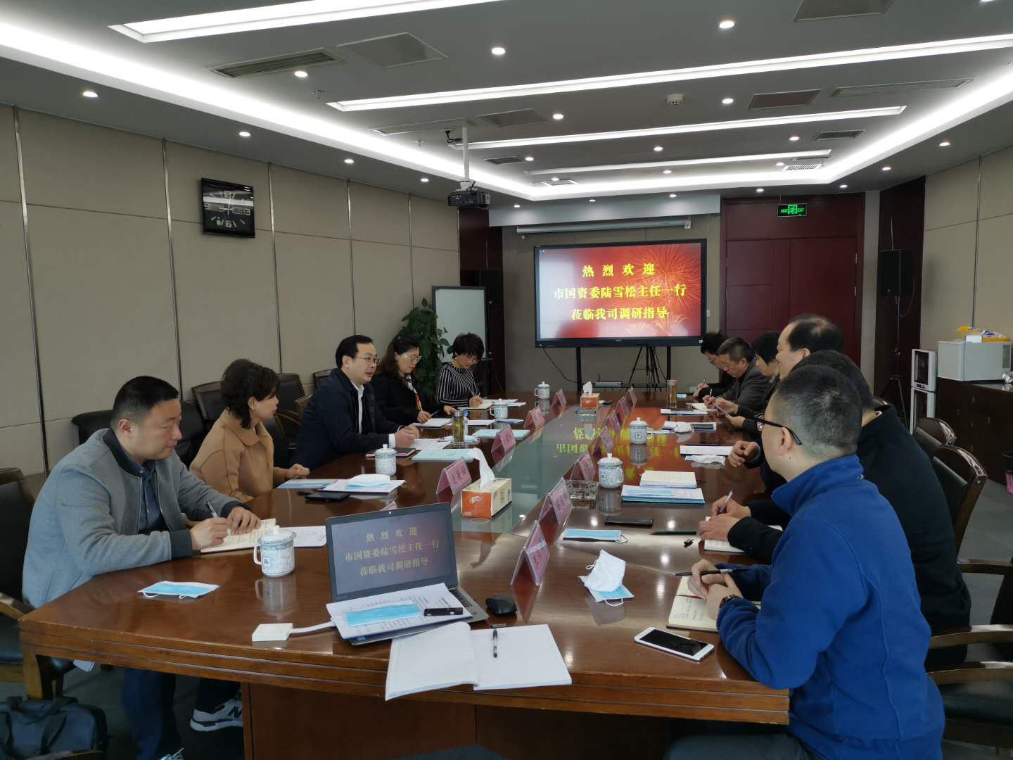 4月14日上午,國資委陸雪松主任、姚靜副主任、凌美娟調(diào)研員及國資委相關(guān)部門領(lǐng)導(dǎo)一行來南通投資管理有限公司調(diào)研指導(dǎo)工作。產(chǎn)控集團黨委副書記、副董事長、總經(jīng)理陸強新,副董事長、副總經(jīng)理顧建國及投資公司全體領(lǐng)導(dǎo)班子成員、中層人員參加了調(diào)研會。