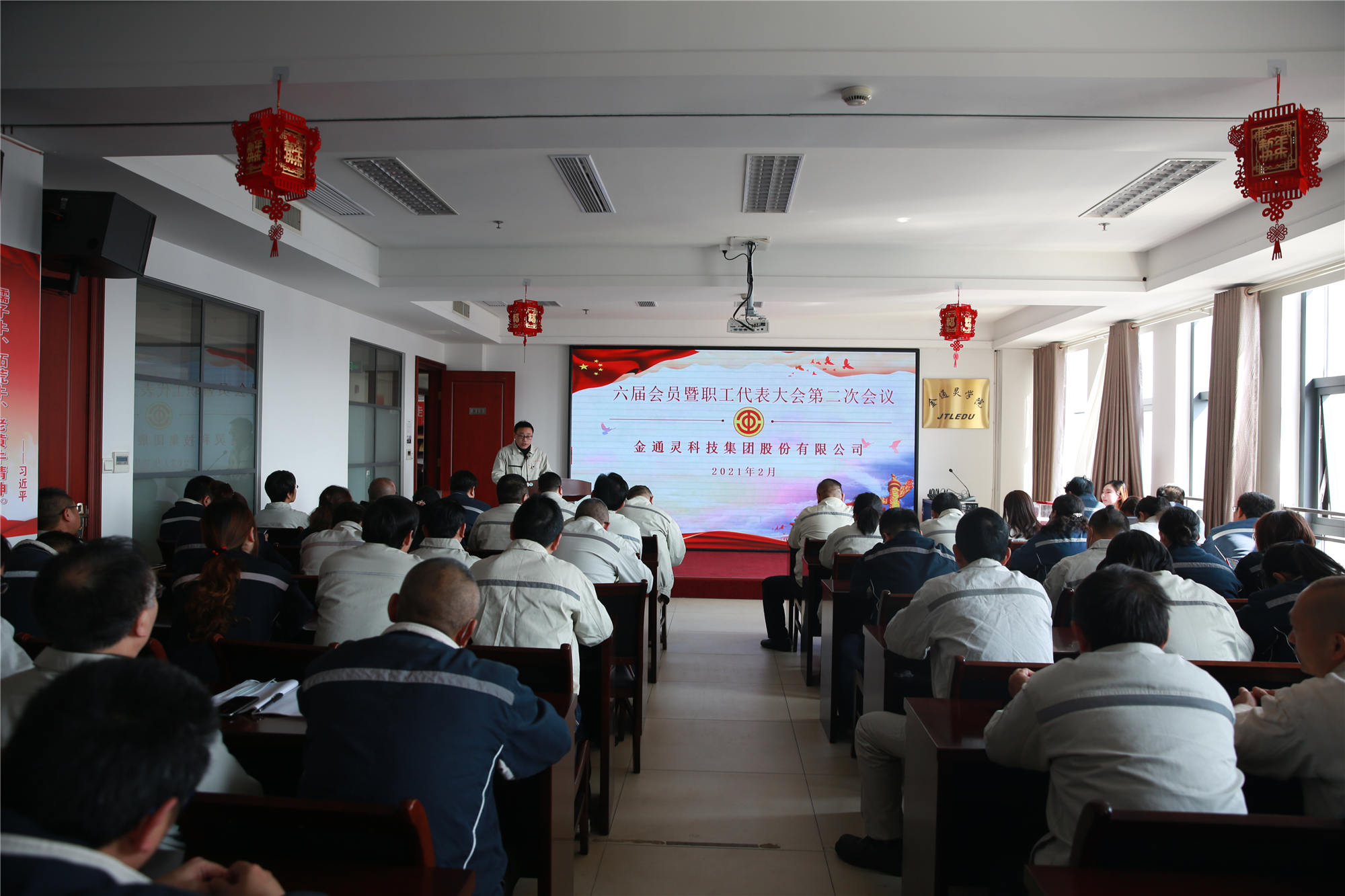 2月24日下午,金通靈科技集團股份有限公司工會六屆會員暨職工代表大會第二次會議在金通靈學(xué)院內(nèi)召開,98名職工代表參與會議,金通靈主要領(lǐng)導(dǎo)、各分子公司主要負責(zé)人、職能部門領(lǐng)導(dǎo)應(yīng)邀列席會議。