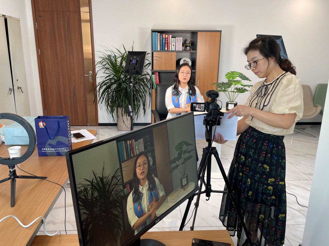 “哈嘍大家好,我是金花吳藥師!”伴隨著極具辨識度的招呼聲,放眼望去端坐在鏡頭前的是精華制藥集團制劑生產分公司副總經理吳玉榮。