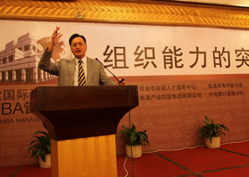 9月7日下午,中歐國(guó)際工商學(xué)院高層管理論壇在通舉行,400多位南通商界高管到場(chǎng),聆聽中歐國(guó)際工商學(xué)院副教務(wù)長(zhǎng)、飛利浦人力資源管理教席教授楊國(guó)安博士的精彩演講——《組織能力的突破》。南通市高級(jí)人才服務(wù)中心及南通產(chǎn)業(yè)控股集團(tuán)有限公司等六家單位參與合辦此次論壇。 在 短短一小時(shí)的主題演講中,楊國(guó)安教授談到“企業(yè)基層搞作業(yè)、中層做管理、高層謀經(jīng)營(yíng)。所謂經(jīng)營(yíng)者,一則制定戰(zhàn)略規(guī)劃,二則培養(yǎng)組織能力,二者缺一不可”。 他從確立員工能力,塑造員工思維,改進(jìn)員工治理三方面闡述如何建立企業(yè)所需的組織能力;對(duì)處于不同發(fā)展周期的企業(yè)給出相應(yīng)建議,指出通過必要的組織變革配 合戰(zhàn)略轉(zhuǎn)型,提高團(tuán)隊(duì)整體戰(zhàn)斗力的重要性。 作為世界華人杰出管理大師之一、國(guó)際公認(rèn)的人力資源管理權(quán)威,楊國(guó)安教授取得的成果不僅限于理論層面,他還同時(shí)擔(dān)任多家知名公司顧問,成功幫助宏基、騰訊等 公司實(shí)現(xiàn)人力資源、組織能力的戰(zhàn)略轉(zhuǎn)型。理論的高屋建瓴和實(shí)踐的腳踏實(shí)地,使得楊教授的理念簡(jiǎn)明實(shí)用,具有很強(qiáng)的指導(dǎo)性和操作性。多年的研究精華凝聚在一 個(gè)下午,給與會(huì)高層職業(yè)經(jīng)理人提供了一個(gè)難得的學(xué)習(xí)機(jī)會(huì)。通過楊教授的演講及與經(jīng)理人的互動(dòng)交流,大家對(duì)組織能力的概念和對(duì)企業(yè)發(fā)展的重要性都有了更深的 認(rèn)識(shí)和理解。 集團(tuán)領(lǐng)導(dǎo)、本部全體員工和投資企業(yè)高管參加了本次論壇。