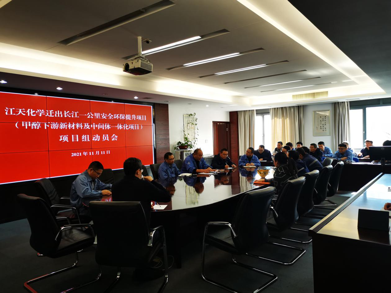 為保障公司搬遷項(xiàng)目有計(jì)劃、高質(zhì)量落地實(shí)施,11月11日下午,江天化學(xué)召開遷出長江一公里安全環(huán)保提升項(xiàng)目(甲醇下游新材料及中間體一體化項(xiàng)目)動(dòng)員會(huì),公司工程項(xiàng)目組全體成員參加會(huì)議。