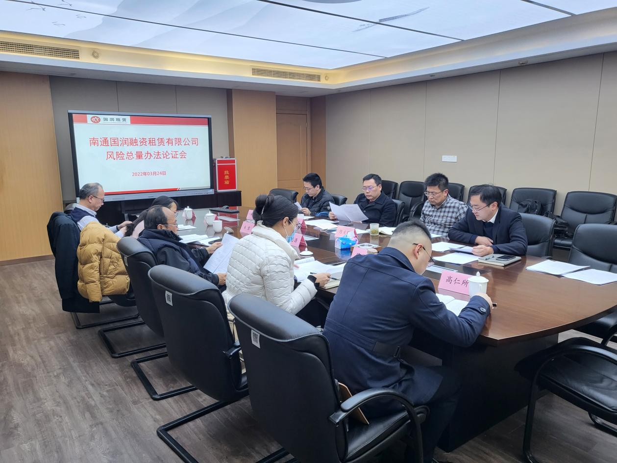 為推動(dòng)公司高質(zhì)量發(fā)展,加快轉(zhuǎn)型升級(jí)、控制經(jīng)營風(fēng)險(xiǎn),國潤租賃邀請(qǐng)市金融局、國資委和銀行、法律等方面專家,共同對(duì)《國潤租賃風(fēng)險(xiǎn)總量管理辦法》進(jìn)行研究論證。