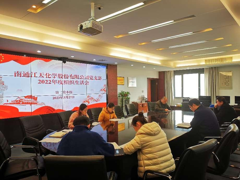 為進(jìn)一步提升基層組織標(biāo)準(zhǔn)化建設(shè),貫徹落實(shí)好市委組織部和產(chǎn)控集團(tuán)黨委關(guān)于召開2022年度基層黨組織組織生活會(huì)和開展民主評(píng)議黨員的有關(guān)工作要求,南通江天化學(xué)股份有限公司黨支部經(jīng)過前期認(rèn)真研究部署,于本月組織領(lǐng)導(dǎo)各黨小組先后召開了上年度組織生活會(huì),完成了黨員民主評(píng)議等各項(xiàng)工作。