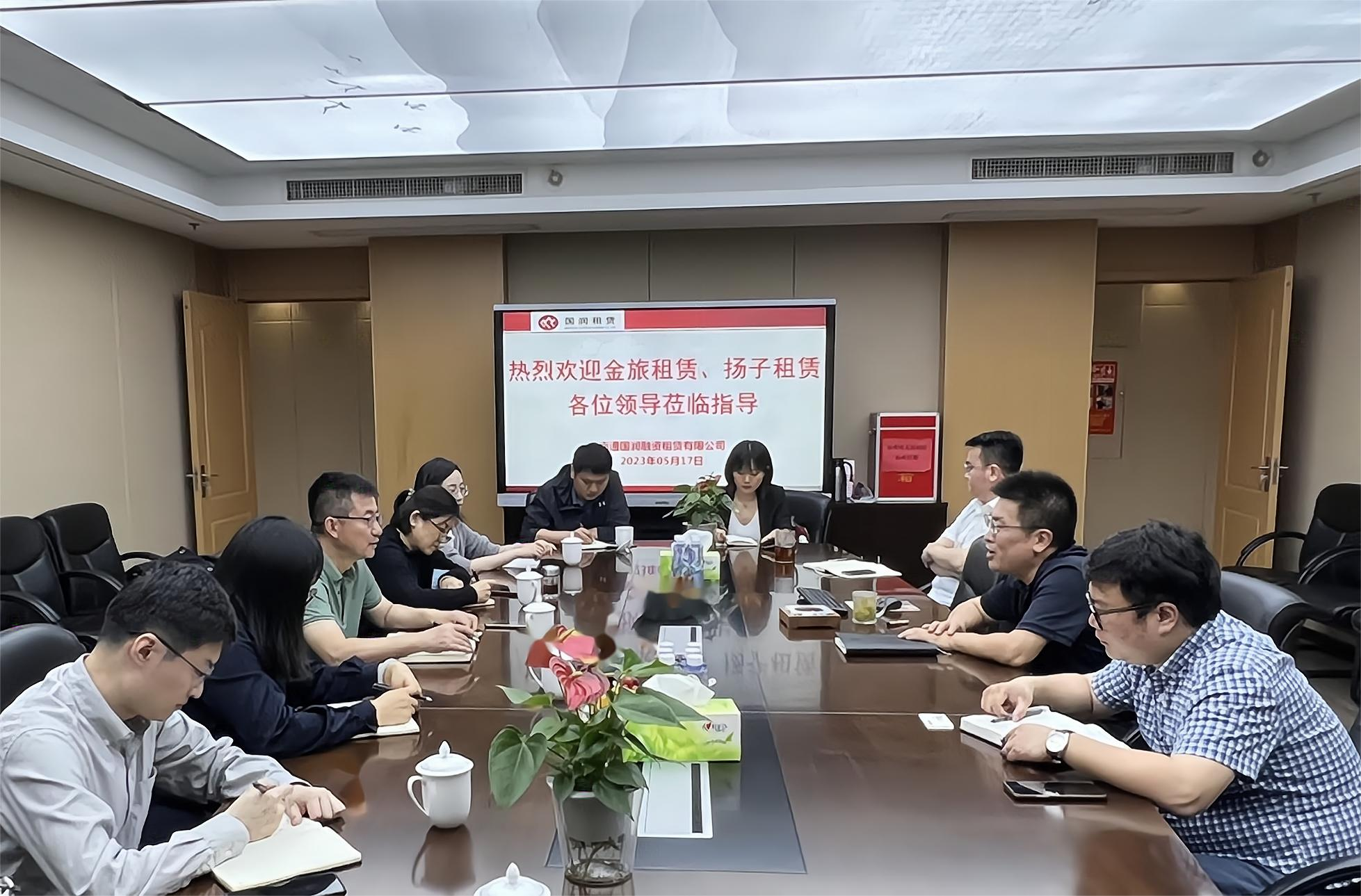 5月17日下午,南京金旅融資租賃有限公司、南京江北新區(qū)揚子科技融資租賃有限公司兩家國有融資租賃公司由董事長帶隊組織相關(guān)部室負責(zé)人一行赴國潤租賃開展同業(yè)座談交流。