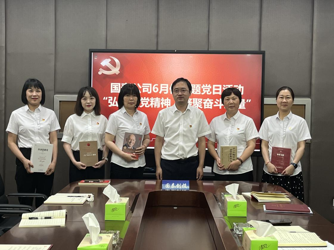為深入貫徹落實(shí)黨的二十大精神和習(xí)近平新時代中國特色社會主義思想,慶祝中國共產(chǎn)黨成立102周年。6月30日,國泰公司黨總支開展“弘揚(yáng)建黨精神,凝聚奮斗力量”主題黨日活動,國泰公司全體員工參與活動。 學(xué)思踐悟新思想 本次主題黨日采取集中學(xué)習(xí)、交流發(fā)言的方式,學(xué)習(xí)習(xí)近平總書記最新重要講話精神、《求是》雜志發(fā)表的習(xí)近平總書記重要文章內(nèi)容。2名黨員同志結(jié)合實(shí)際,作學(xué)習(xí)體會交流。通過學(xué)習(xí),切實(shí)把習(xí)近平新時代中國特色社會主義思想轉(zhuǎn)化為堅定理想、錘煉黨性、指導(dǎo)實(shí)踐和推動工作的強(qiáng)大力量。