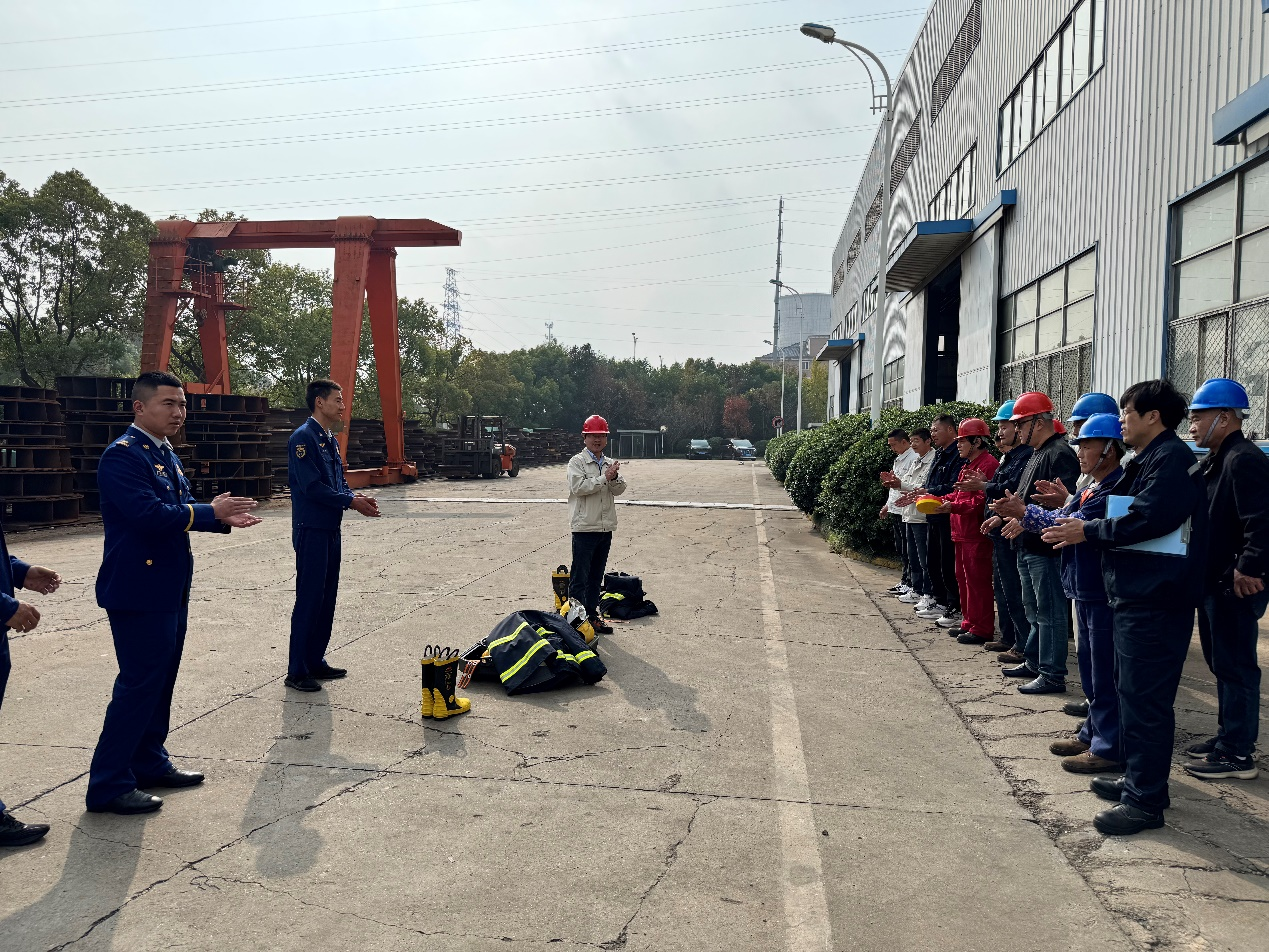 近日,金通靈公司義務(wù)消防隊(duì)全員、集中供氣站作業(yè)人員、全體安全管理人員在公司集中供氣站附近空地整隊(duì)集合,伴隨著消防車(chē)的駛?cè)?,本次公司消防?yīng)急拉練活動(dòng)暨消防技能培訓(xùn)拉開(kāi)序幕。本次活動(dòng)特邀觀(guān)音山特勤消防站的指戰(zhàn)員作現(xiàn)場(chǎng)指導(dǎo)和講解,企管部(安全管理部)高級(jí)總監(jiān)沈毅作現(xiàn)場(chǎng)動(dòng)員。