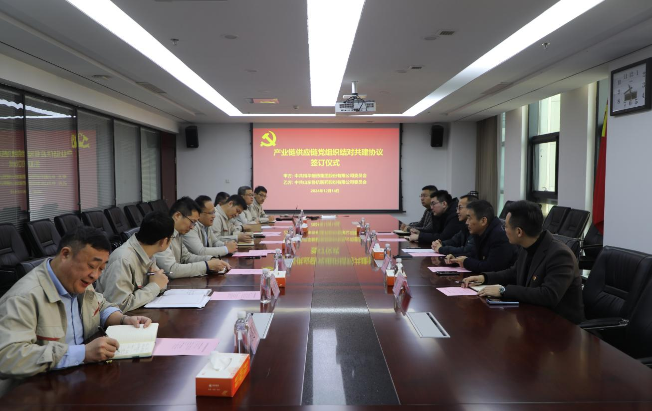 為進一步學習貫徹黨的二十屆三中全會精神,創(chuàng)新黨建工作,以“黨建內鏈”驅動“產(chǎn)業(yè)外鏈”,不斷激發(fā)基層黨建活力,形成優(yōu)勢互補、資源共享,共同提高、合作共贏的黨建工作格局,經(jīng)前期溝通,受魯抗醫(yī)藥邀請,12月14日,精華制藥集團股份有限公司黨委書記、董事長尹紅宇、集團副董事長、江蘇森萱醫(yī)藥股份有限公司董事長吳玉祥等一行5人赴山東魯抗醫(yī)藥股份有限公司開展黨建共建活動。
